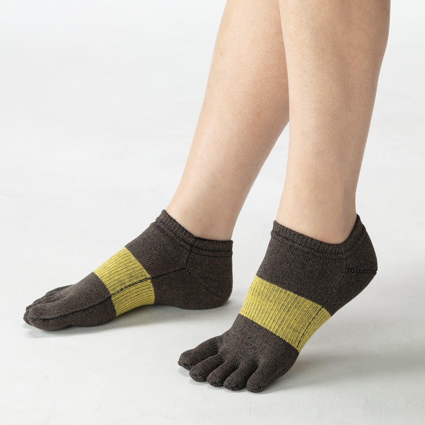 【保湿×抗菌ソックス】敏感肌・アトピー肌に優しい久留米靴下 021 ショート丈 [グレイ✖️イエロー]